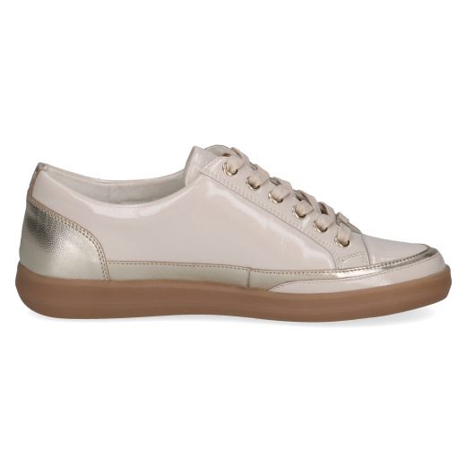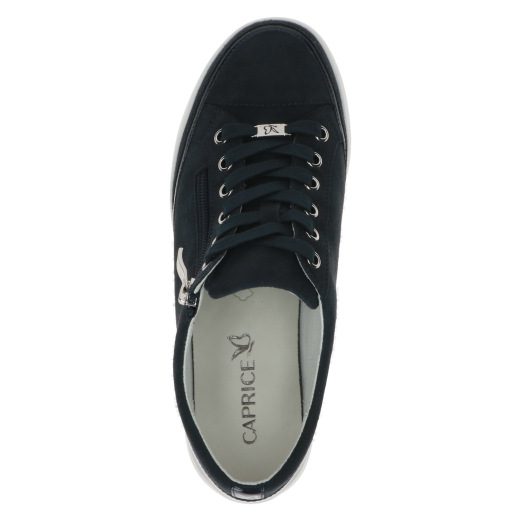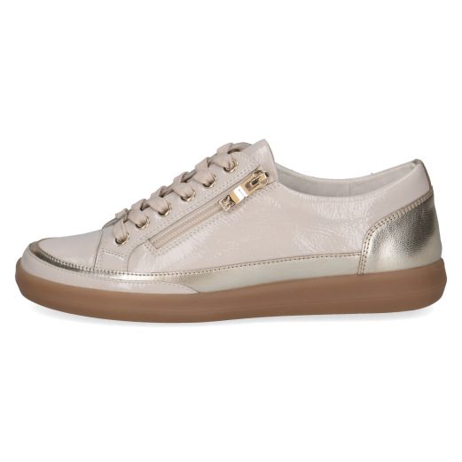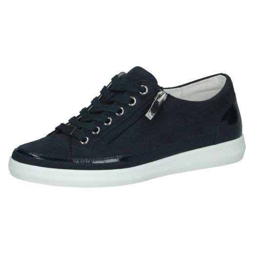 This classic style from the Caprice range is always a firm favourite. It features a side zip as well as a lace for adjustment. It gives you all the comfort of a trainer with a minimal dressier look thats perfect with skirts or dresses as well as trousers. They have metallic/patent accents and a slightly chunkier sole. The leather uppers ensure all day comfort. These would make a perfect versatile addition to any wardrobe.