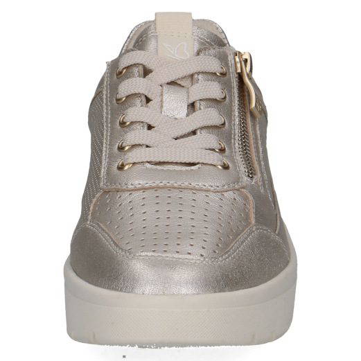 These are a lovely soft leather trainer from the Caprice Range.They feature a lace up front with a working side zip for ease of getting on and off. They feature a removable footbed that is machine washable at 30 degrees. These trainers in this lovely neutral metallic are a great addition to any wardrobe.