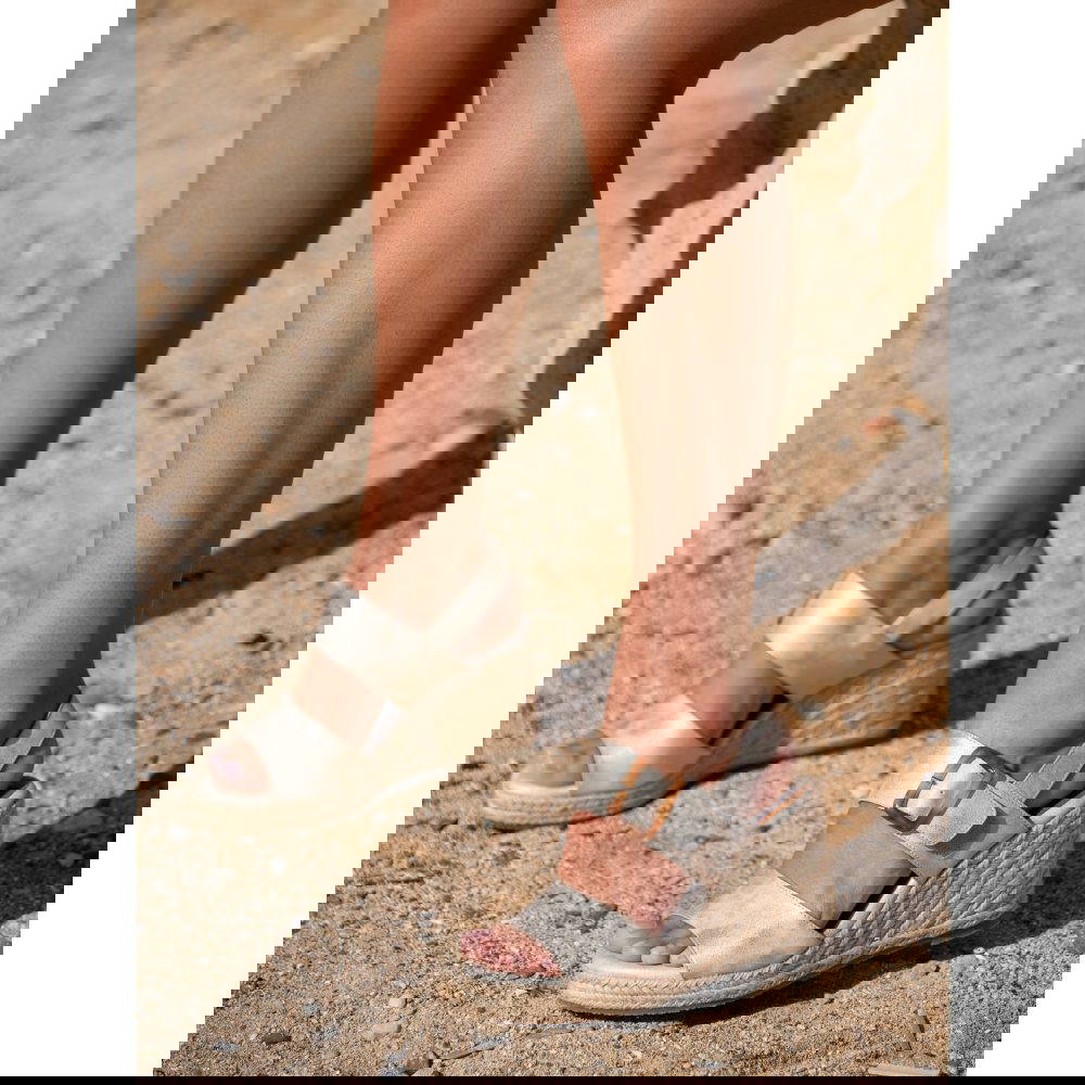 Step up your wedge game in the Rochester. This sandal boasts a woven effect wedge with metallic straps for an ultra-luxe finish. A padded insole ensures you can enjoy the extra height with cushioning in every step. hook-and-loop fasten straps allow for easy wear, meaning you can enjoy your holiday evenings and beach escapes with ease.